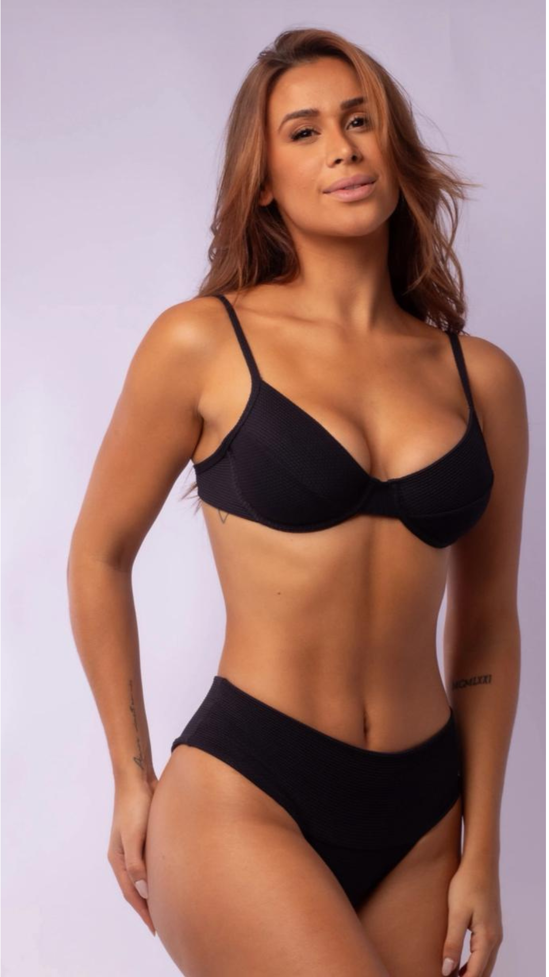 Bikini na cor terracota ou cor preto em tecido colméia top aro.
